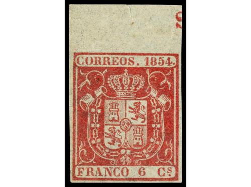 * ESPAÑA. Ed. 24. 6 cuartos carmín, borde de hoja. PIEZA DE LUJO. Cert. GRAUS.