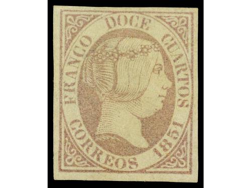 (*) ESPAÑA. Ed. 7. 12 cuartos lila, grandes márgenes. PIEZA DE LUJO. Cert. GRAUS. Cat. 6.000€.