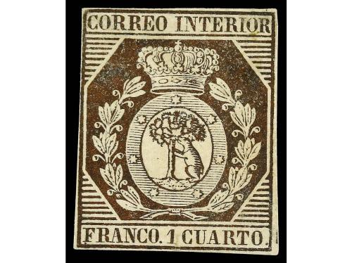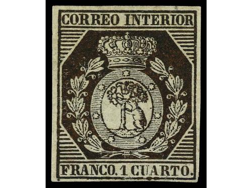 (*) ESPAÑA. Ed. 22. 1 cuarto bronce. Buen color y márgenes. PIEZA DE LUJO. Cert. COMEX. Cat. 3.300€.