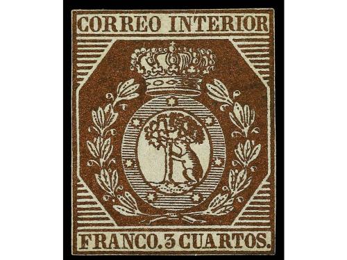 (*) ESPAÑA. Ed. 23. 3 cuartos bronce dorado. Buen ejemplar de márgenes justos pero completos. Cert. GRAUS. Cat. 13.200€.