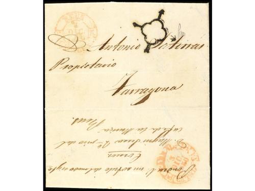 ESPAÑA. 1850. REUS a TARRAGONA. Carta dirigida a Antonio Satorrás, Diputado de la Provincia de Tarragona. Al disponer de la franquicia postal el correo estampó la marca "araña" para indicar que la carta era franca.