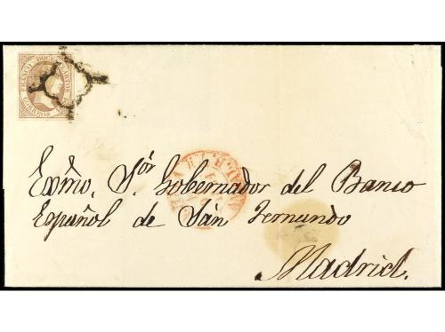 ESPAÑA. Ed. 7. 1851. SEVILLA a MADRID. 12 cuartos lila, mat. añara. PRECIOSA y RARA. Cert. CEM.
