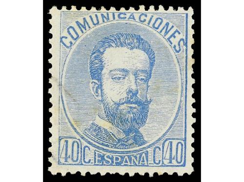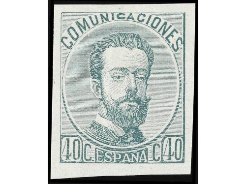 ESPAÑA. 1871. 40 cts. azul. Ensayo de color con dentado y goma originales. RARO. (Gálvez 797).