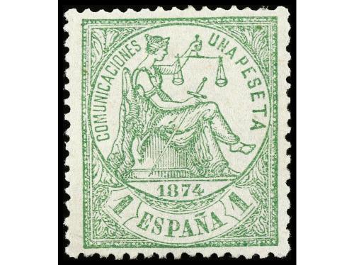 ** ESPAÑA. Ed. 150. 1 pta. verde. Centraje perfecto. PIEZA DE LUJO. Cert. COMEX.