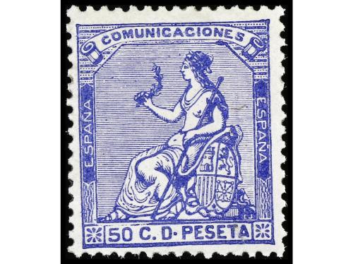 ** ESPAÑA. Ed. 137. 50 cts. azul. Magnífico ejemplar.
