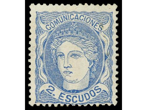 (*) ESPAÑA. Ed. 112. 2 escudos azul. Bien centrado. Muy buen ejemplar. Cert. COMEX.
