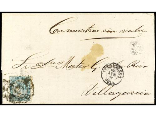 ESPAÑA. Ed. 91. 1868. VIGO a VILLAGARCÍA. 10 cents. verde, manuscrito ´Muestras sin valor´ correspondiente a cuatro portes.
