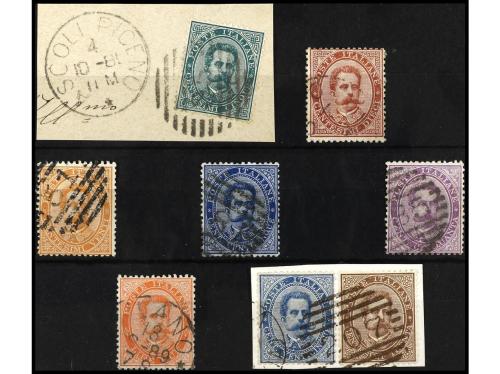 º ITALIA. Yv. 33/9, Sa. 37/43. SERIE COMPLETA, 7 valores. Muy bonita. 30 cts. (valor clave) sobre pequeño fragmento y cert. CAFFAZ. Cat. +2.293€.