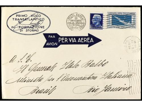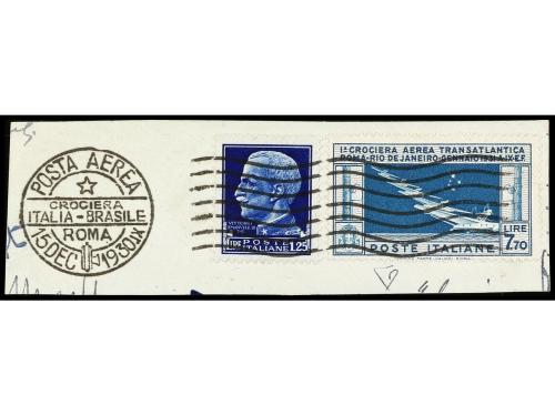 ITALIA. Sa. A25. 1930. ROMA a RIO DE JANEIRO. 7,70Ђ liras azul en carta circulada, marca especial del vuelo, llegada en el frente.
