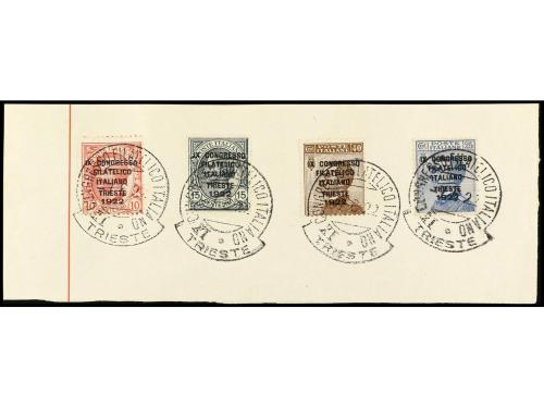 º Δ ITALIA. Yv. 117/20 Sa. 123/6. SERIE COMPLETA, 4 valores. Sobre fragmento con mat. conmemorativo del Congreso Filatélico. RARA. Cert. RAYBAUDI.