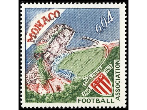 ** MONACO. Yv. 623A. 1963. FÚTBOL. NO EXPENDIDO. 0,04 Fr. multicolor SIN SOBRECARGA. MUY RARO. Cert. A. BOLAFFI. Cat. 1.000€.