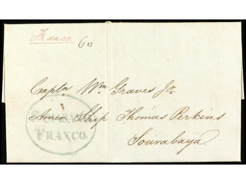 INDIA HOLANDESA. 1838. SAMARANG (Java) a SUURABAYA (Java). Carta completa con texto marca SAMARANG/FRANCO en azul, manuscrito "Franca 60".