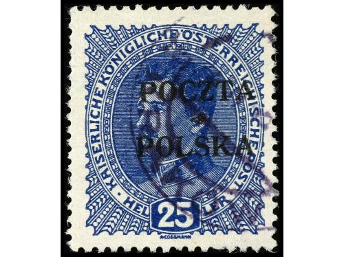 ° POLONIA. 1919. 25 h. azul, mat. KROKOW. Dentado algo irregular. Cat. 1.200€.