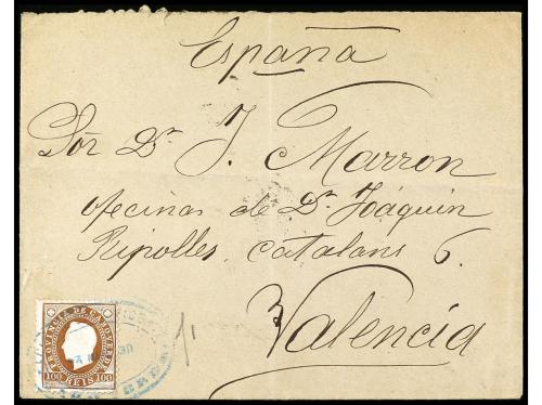 COLONIAS PORTUGUESAS. 1888. CABO VERDE a VALENCIA. 100 reis castaño rojo, inusual destinación a España.