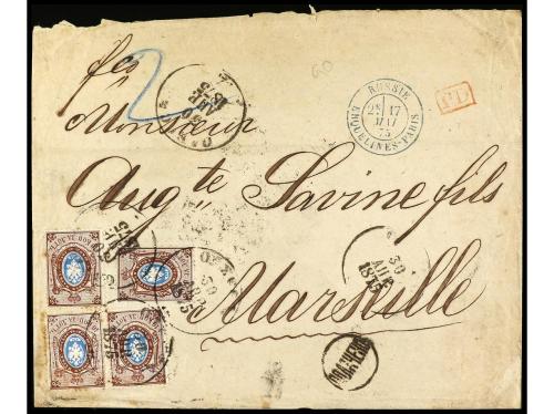 RUSIA. Yv. 26 (4). 1875. ODESSA a FRANCIA. 10 k. castaño y azul (4).