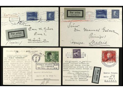 SUECIA. 1928-35. Conjunto de 10 cartas o tarjetas. Correo Aéreo y marítimo.