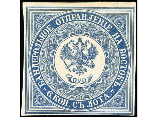 * LEVANTE: CORREO RUSO. Yv. 1. 1863. 6 kr. azul. Ligero pliegue vertical. Cat. 450€.