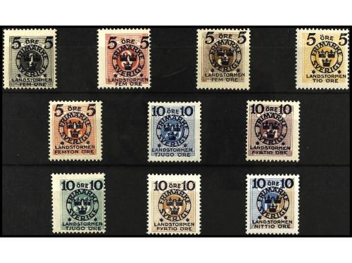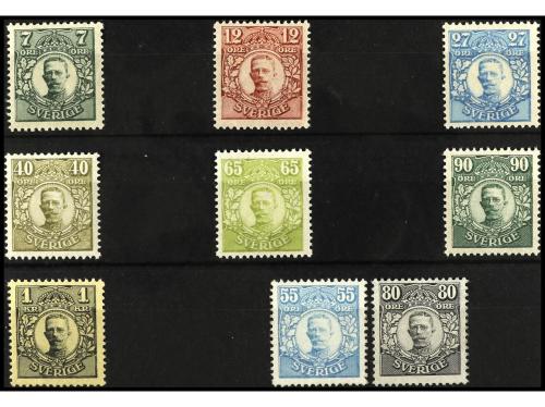 * SUECIA. Yv. 97/105. 1918. GUSTAVO V. SERIE COMPLETA, 9 valores. RAROS. Valores clave firmados DIENA. Cat. 3.764€.