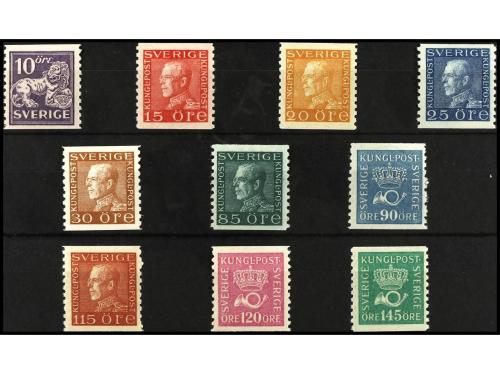 * SUECIA. Yv. 163A/77. SERIE COMPLETA, 15 valores, más 10 ö con filigrana (Yv.* 193) . Cat. 880€.