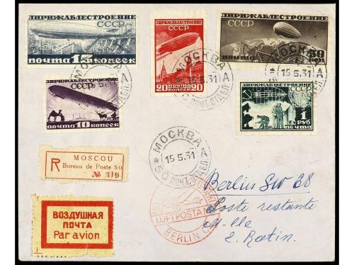 RUSIA. Mi. 397/400CX. 1931. MOSCÚ a BERLÍN. SERIE COMPLETA SIN DENTAR en carta circulada, al dorso llegada.