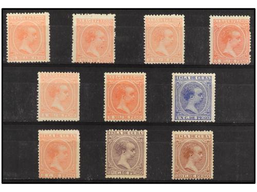 ** COLONIAS ESPAÑOLAS: CUBA. Ed. 130/9. SERIE COMPLETA, 10 valores. 3 mil dentado derecho irregular y 2 cts. goma no original. Cat. 200€.