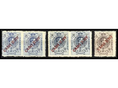 **/* COLONIAS ESPAÑOLAS: CABO JUBY. Ed. 11, 14 y 16 var. 25 c. y 50 c., pareja, uno "J" corta y 4 ptas. "J" corta. Cat. +/- 900€.
