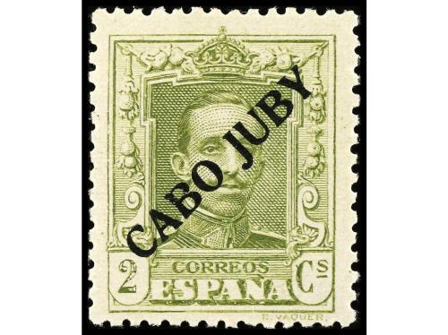 ** COLONIAS ESPAÑOLAS: CABO JUBY. Ed. 22. 2 cts. verde oliva. MUY RARO y de LUJO. Cert. COMEX. Cat. +720€.