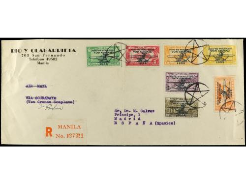FILIPINAS. 1932 (28 septiembre). MANILA a MADRID circulado vía Sourabaya en el vuelo realizado por el piloto VON GRONAU (Mu. 89).