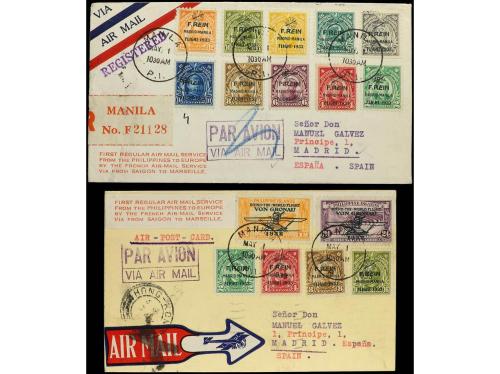 FILIPINAS. 1933 (1 mayo). Dos cartas circuladas de MANILA a MADRID en el Primer vuelo regular Filipinas-Europa por las líneas aéreas francesas.