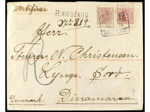 COLONIAS ESPAÑOLAS: GUINEA. Ed. 144, 150. 1920. RIO BENITO a DINAMARCA. 10 cts. carmín y 50 cts. lila, carta certificada, al dorso llegada.