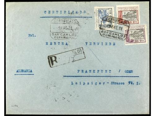 COLONIAS ESPAÑOLAS: GUINEA. Ed. 168, 170, 174. 1931. S. CARLOS a ALEMANIA. 10 cts., 20 cts. y 50 cts. carta certificada, al dorso llegada.