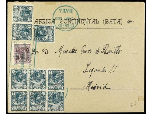 COLONIAS ESPAÑOLAS: GUINEA. Ed. 49 (2), 58T (4). 1909. BATA a MADRID. Carta certificada, precioso franqueo, al dorso llegada.