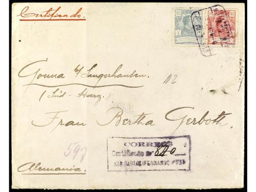 COLONIAS ESPAÑOLAS: GUINEA. Ed. 156, 163. 1923. S. CARLOS a ALEMANIA. 5 cts. verde, 50 cts. carmín. Carta certificada, al dorso llegada.