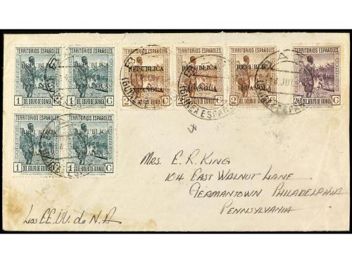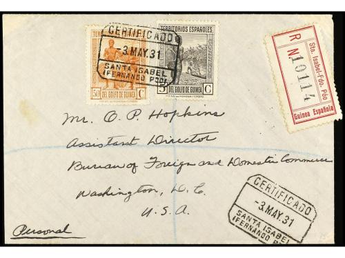COLONIAS ESPAÑOLAS: GUINEA. Ed. 204, 211. 1931. STA. ISABEL a U.S.A 5 cts. y 50 cts. Carta certificada, al dorso llegada.
