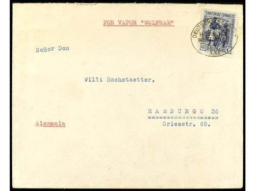 COLONIAS ESPAÑOLAS: GUINEA. Ed. 212. 1931. BATA a HAMBURGO. 40 cts. azul, mat. ovalado marítimo alemán DEUTSCHE SEEPORT/ LINE HAMBURG/ WESTAFRIKA. RARA.