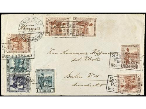COLONIAS ESPAÑOLAS: GUINEA. 1931. S. CARLOS a ALEMANIA. 1 cto. (2), 2 cts. (5) y 40 cts. mat. marítimo alemán SCHIFBRIEF/ PAQUEBOT/ UBER HAMBURG y llegada al frente. RARA.