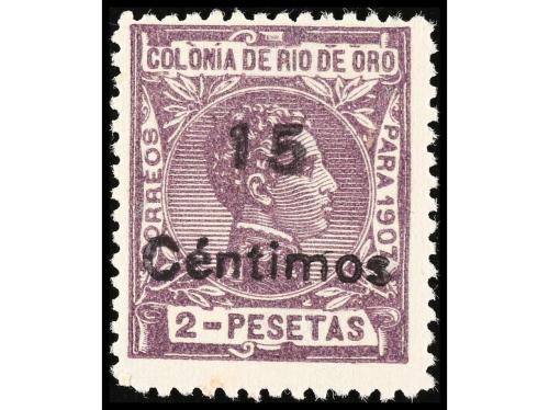 ** COLONIAS ESPAÑOLAS: RIO DE ORO. Ed. 63hza. 15 c. s. 2 pesetas violeta. RARO. Cat. 140€.