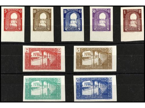 ** COLONIAS ESPAÑOLAS: MARRUECOS. Ed. 42/50s. TELÉGRAFOS. Serie completa. 9 valores SIN DENTAR. RARA y de LUJO. Cat. +525€.
