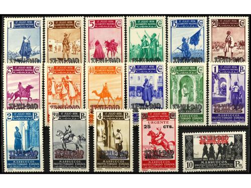 * COLONIAS ESPAÑOLAS: MARRUECOS. Ed. 217/33. SERIE COMPLETA, 17 valores. 5 cts. de escaso valor, leves sombras del tiempo. Cat. 320€.
