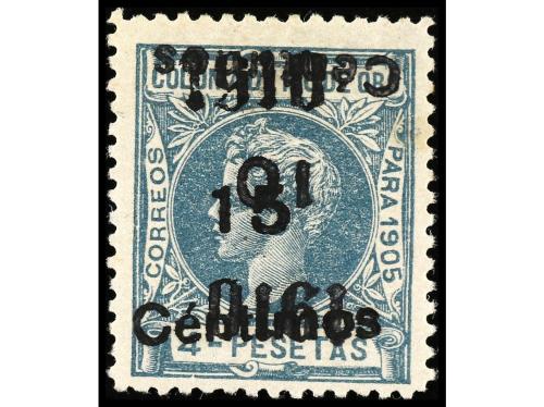 ** COLONIAS ESPAÑOLAS: RIO DE ORO. Ed. 54. HABILITACIÓN DOBLE UNA INVERTIDA DE VALORES DISTINTOS. 10 y 15 cts. sobre el mismo sello. MUY RARO y de LUJO. No reseñado. Cert. COMEX. Cat. 200.