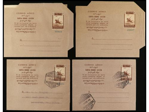 COLONIAS ESPAÑOLAS: MARRUECOS. 1940. AEROGRAMA. 1,30 pts. castaño (4), uno nuevo, uno con 00000 y dos matasellados en Tetuán.