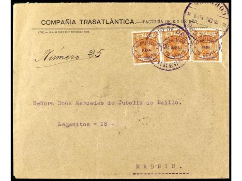 COLONIAS ESPAÑOLAS: RIO DE ORO. Ed. 47, 48. 1910. RÍO DE ORO a MADRID. 25 cts. azul y 30 cts. carmín, carta certificada, al dorso llegada.