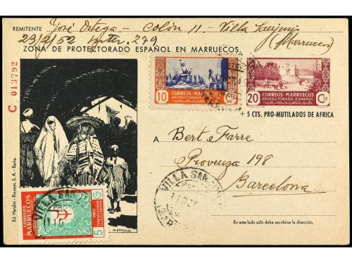 COLONIAS ESPAÑOLAS: MARRUECOS. 1937-51. Conjunto de 7 cartas con series completas en cartas circuladas.