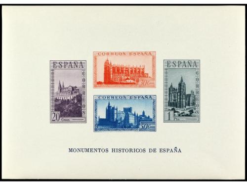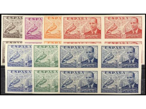 ** ESPAÑA. Ed. 880/6s (4). SERIE COMPLETA. 7 valores en bloques de cuatro SIN DENTAR. Goma de dos tonalidades. Cat. 2.000€.