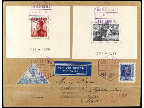 ESPAÑA. Ed. 862/63. 1938. BARCELONA a PARÍS. H.B. dentada en carta circulada, al dorso llegada. RARÍSIMAS.