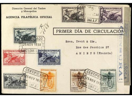 ESPAÑA. Ed. 792/800. 1938. BARCELONA a FRANCIA. Serie completa en carta circulada, al dorso llegada. PRECIOSA y RARA.