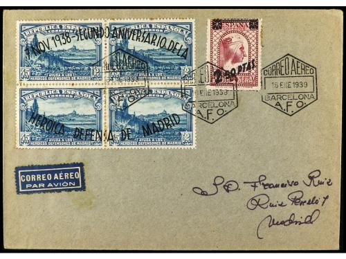 ESPAÑA. Ed. 790, 791. 1939. Carta sin circular y con matasellos de favor de la A.F.O.