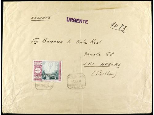 ESPAÑA. Ed. 901. 1940. ZARAGOZA a LAS ARENAS (Bilbao). 4 pts. + 1 pta. verde y lila. Carta certificada, al dorso llegada.