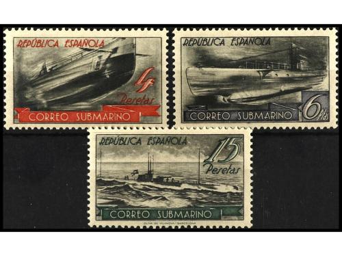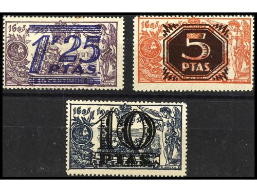 * ESPAÑA. Ed. NE 35/7. SERIE COMPLETA. 3 valores. MUY RARA. Tirada 500. 1,25 pts. sobre 15 cts. leve sombra del tiempo. Cat. 900€.