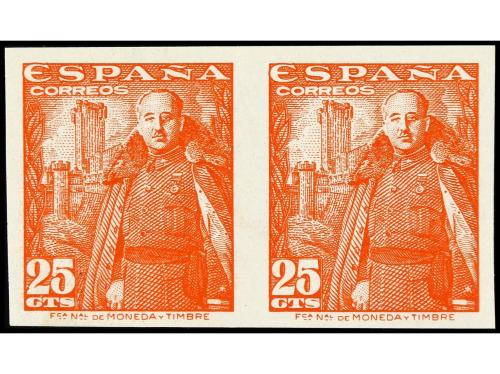 ** ESPAÑA. Ed. 1024s (2). 25 cts. rojo. Pareja SIN DENTAR. LUJO. Cat. 332€.